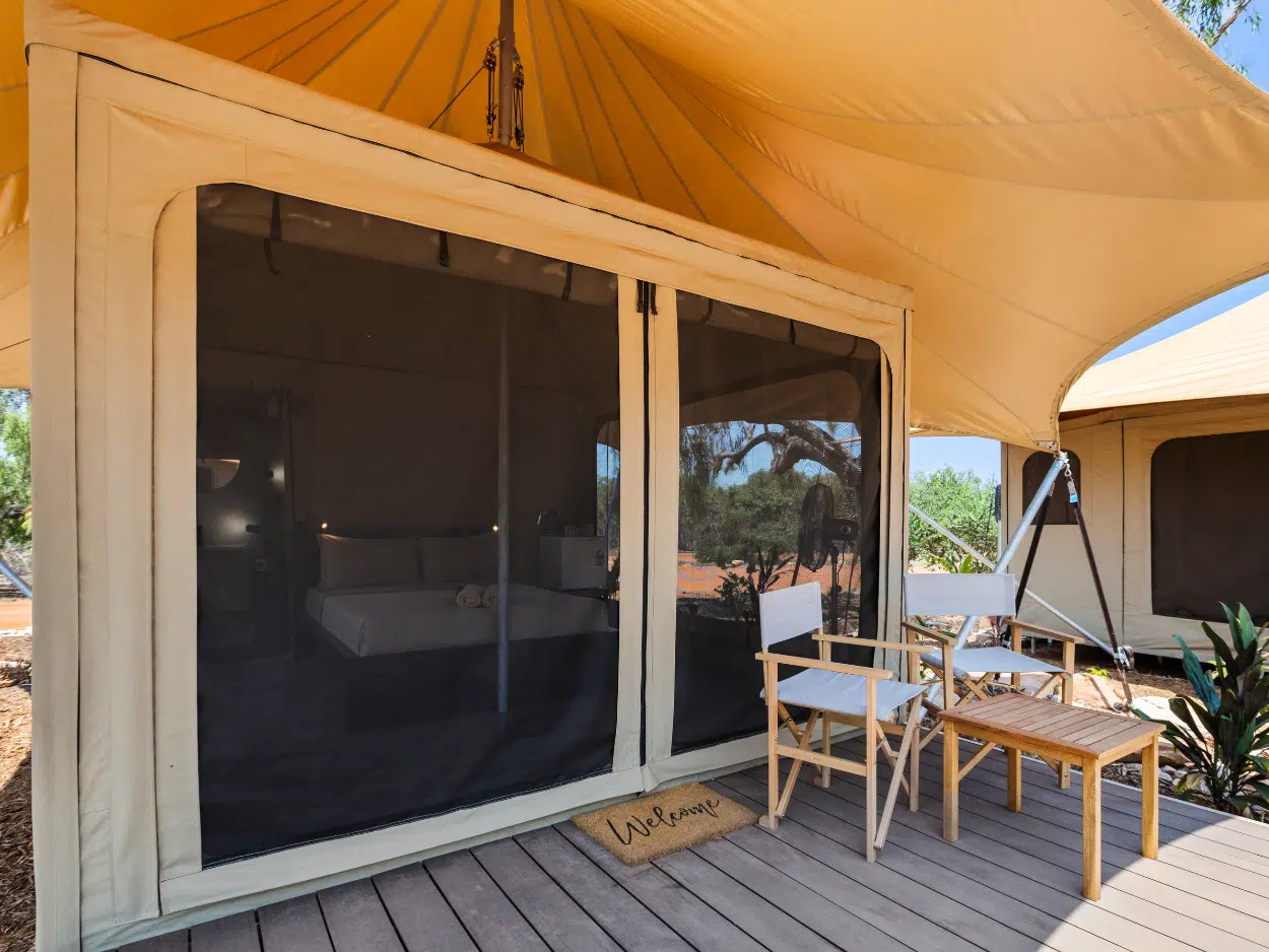 Indulge in the comfort of our Village Eco tents located just a short stroll from the heart of our farm village, where you’ll find reception, dining and our inviting pool. Linen and bathroom towels provided for your convenience.