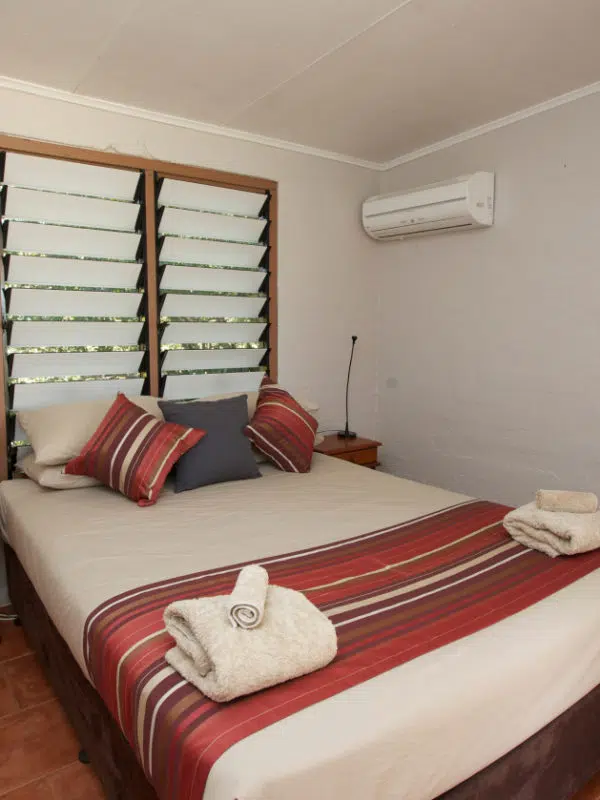 Airconditioned queen bedrooms, fans in living and shared bedroom.