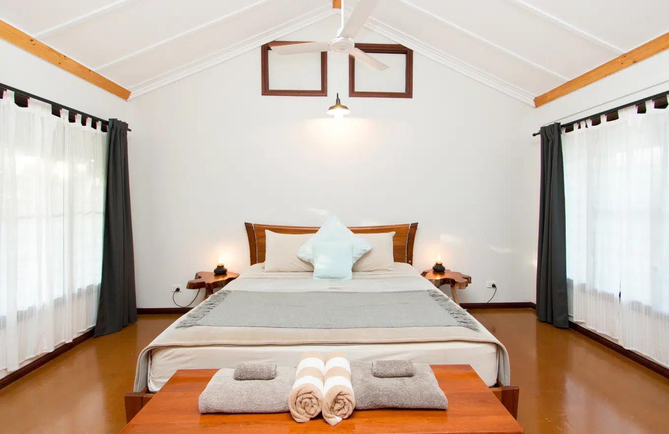 Airconditioned queen bedrooms, fans in living and shared bedroom.