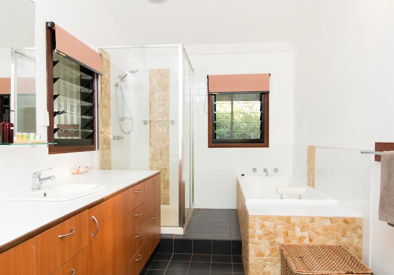 Our Master Pearler’s Private Retreat is a one of a kind home. Situated a good 20 minutes from the main farm village, reception area and restaurant, it offers complete seclusion and privacy. Set atop an elevated headland, it boasts magnificent views out to sea and across a tidal lagoon. Suitable for couples looking for a private getaway, or large groups seeking their own space.